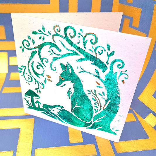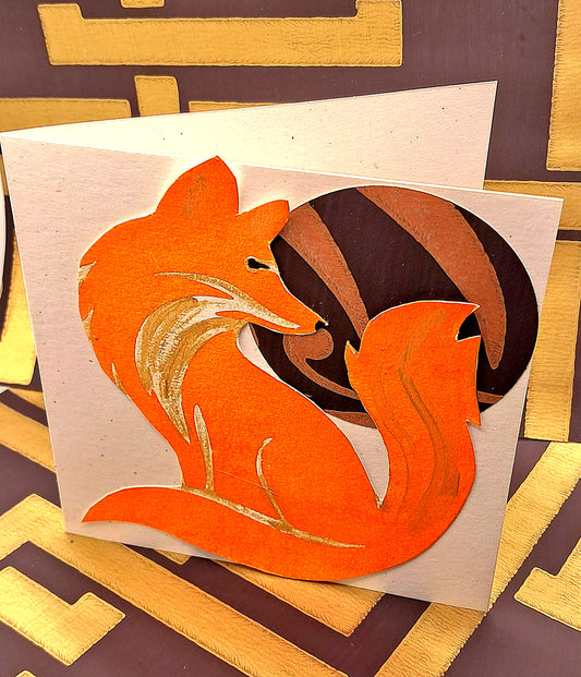 FULL MOON FOX. HAND-PAINTED & ECO-FRIENDLY GREETINGS CARD.