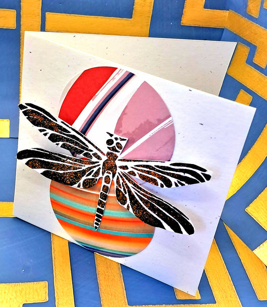 BLACK DRAGONFLY. HAND-PAINTED & ECO-FRIENDLY GREETINGS CARD.