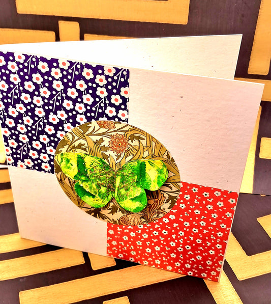 GREEN BUTTERLY. HAND PAINTED & ECO-FRIENDLY GREETINGS CARD.