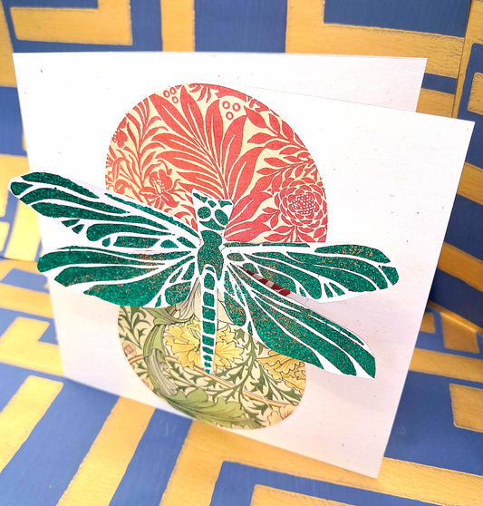 GREEN DRAGONFLY. HAND-PAINTED & ECO-FRIENDLY GREETINGS CARD.