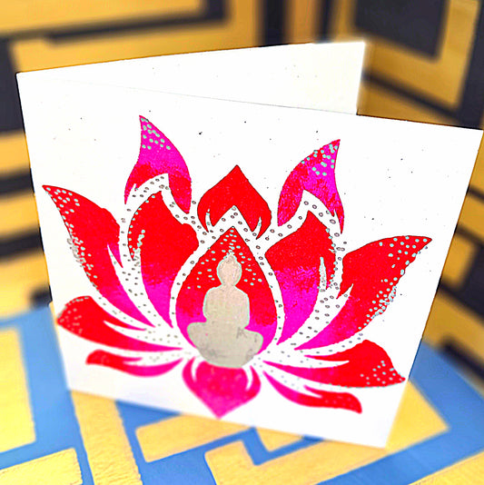 LOTUS FLOWER. HAND-PAINTED & ECO-FRIENDLY GREETINGS CARD.