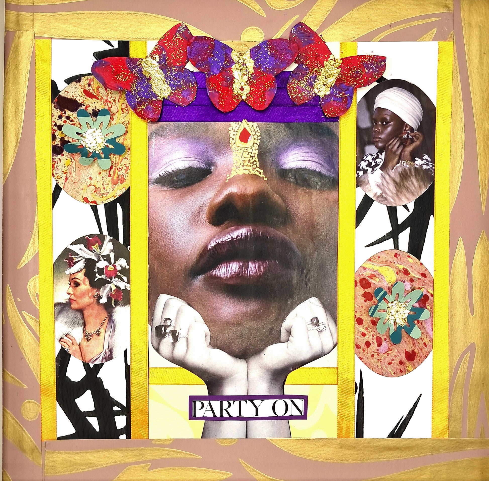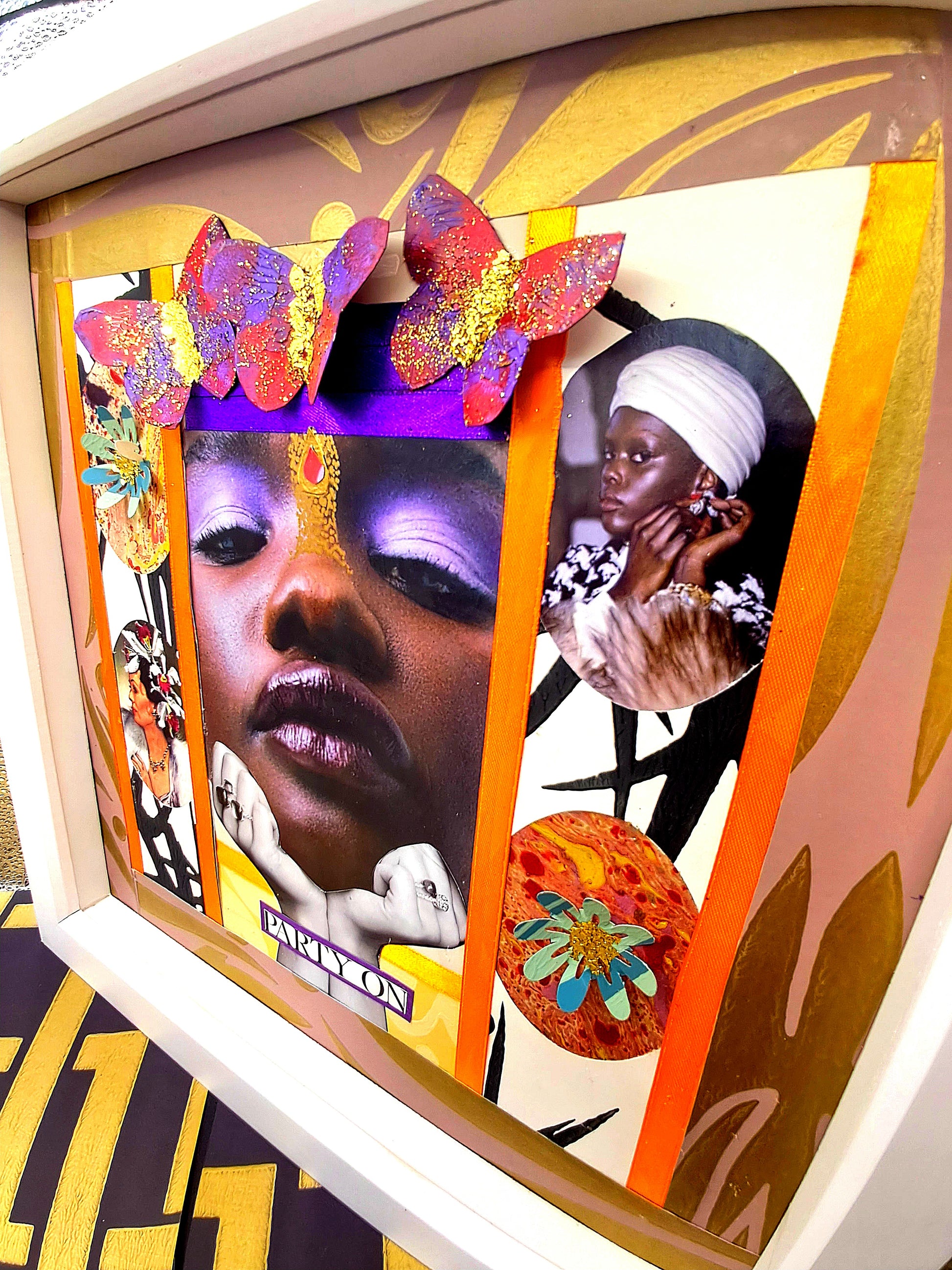 PARTY GALS. ORIGINAL COLLAGE ART. FRAMED.