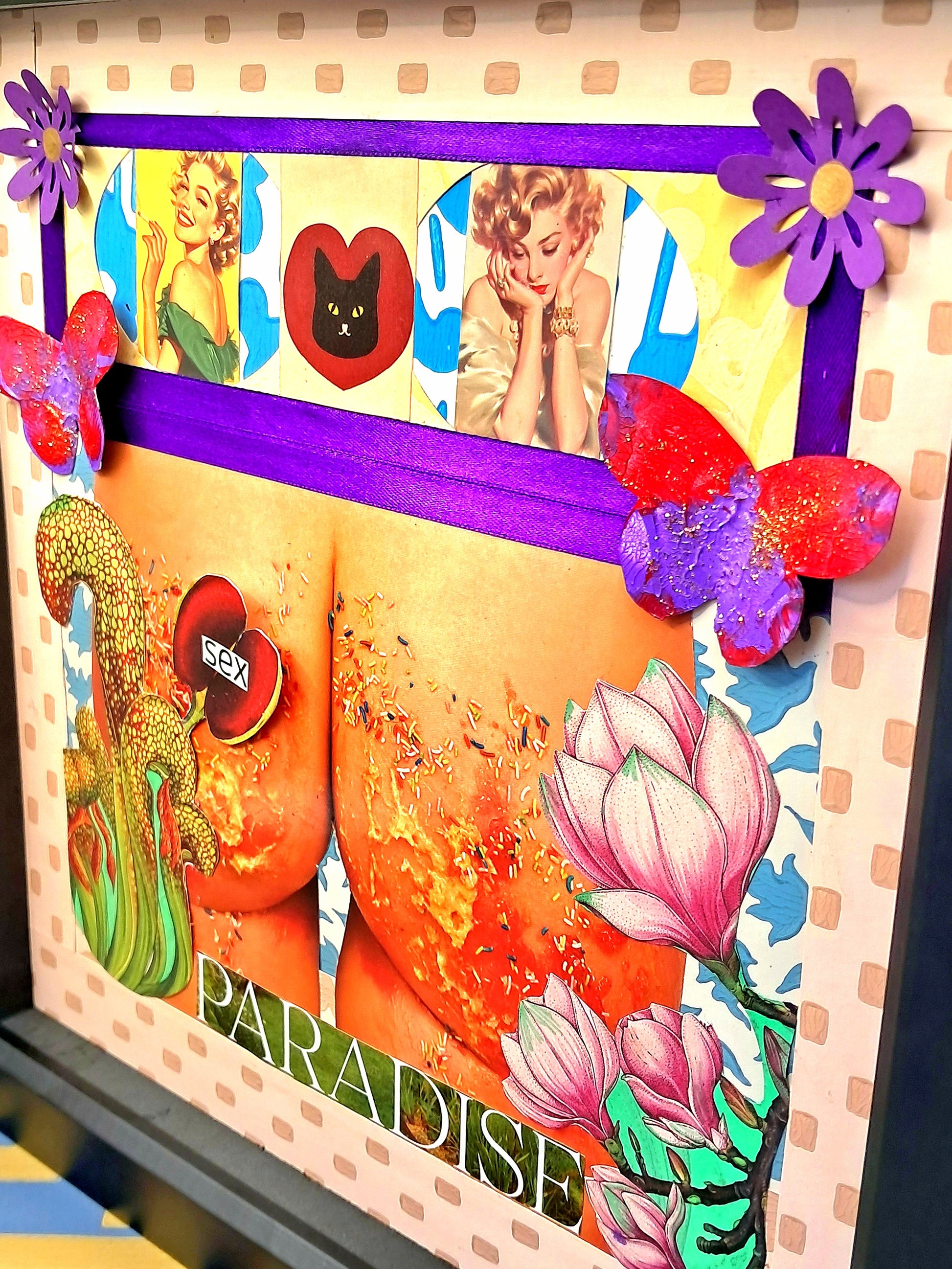 SWEET PARADISE. ORIGINAL COLLAGE ART. FRAMED.