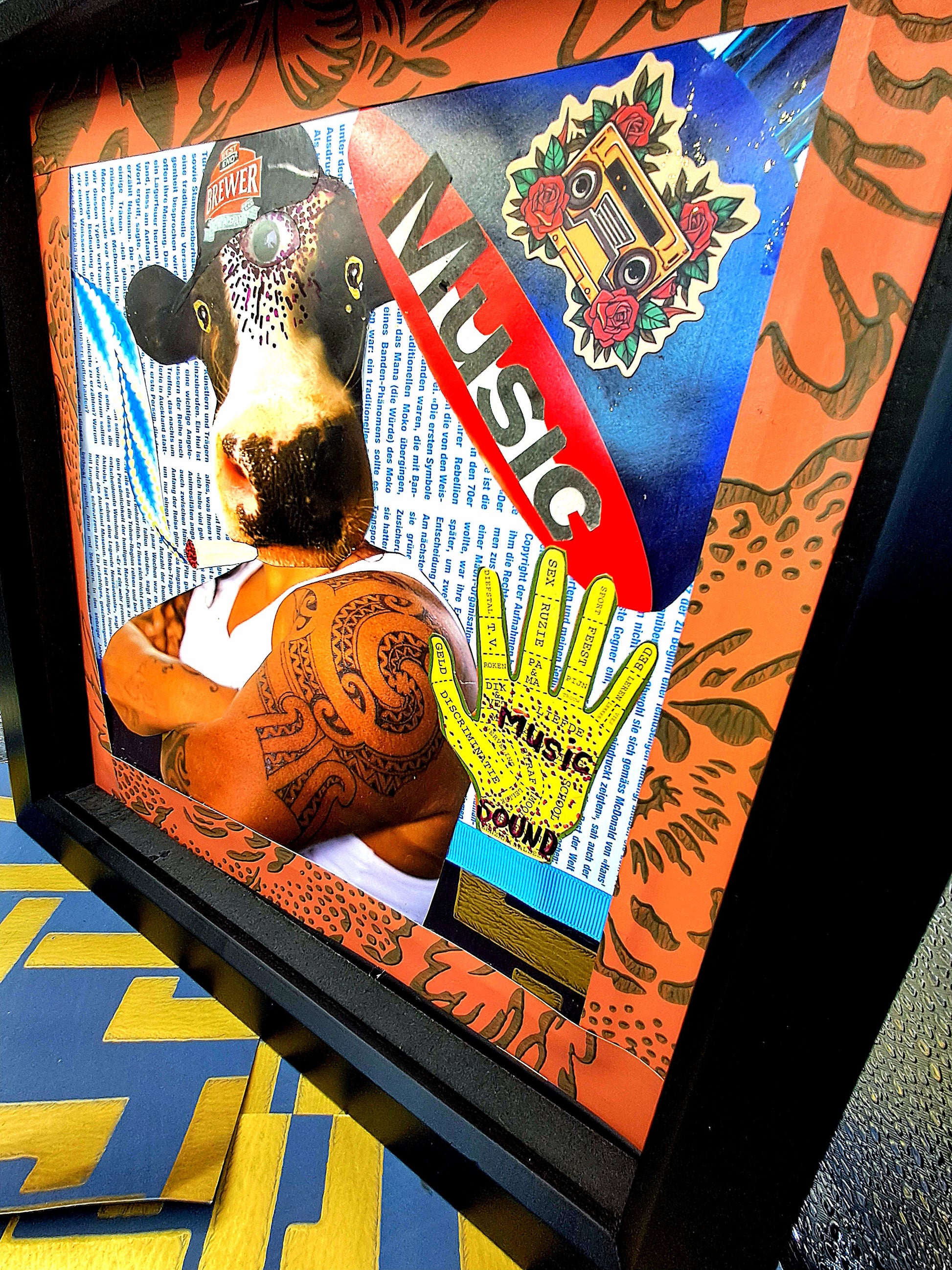 HIP-HOP COW. ORIGINAL COLLAGE ART. FRAMED.